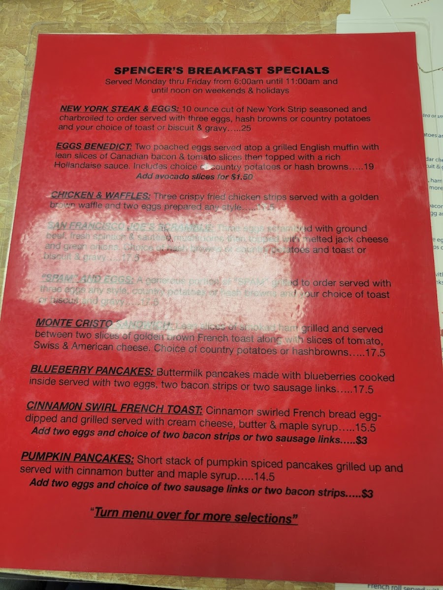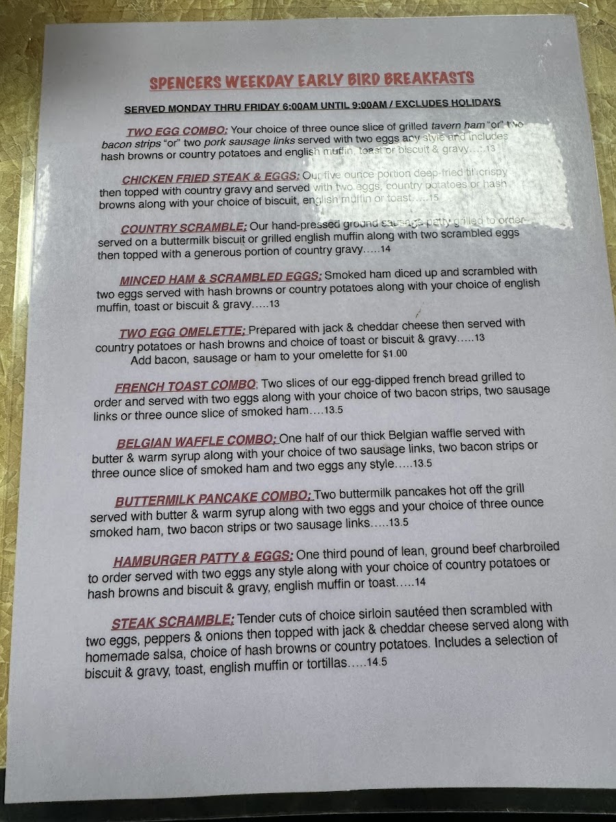 Don’t just take our word for it; the feedback from loyal patrons speaks volumes. Repeat visitors like Jazmine Vance affirm that Spencer’s has become their go-to breakfast spot, where the Chicken Fried Chicken is not to be missed. The warm, friendly ambiance, paired with consistent quality, makes it a cherished favorite among families and individuals alike. John Haberkern applauded the restaurant for its cleanliness and professional service, appreciating how the accommodating staff helps make every dining experience delightful.